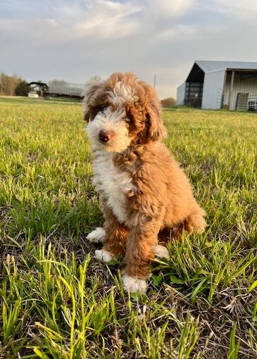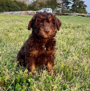 I am a F1 female mini Chocolate Phantom Aussiedoodle. My mommy thinks I will be about 20 pounds when I am grown, I was born January 10,2026. I am up to date on my vaccinations and deworming. I have started crate and potty training.
