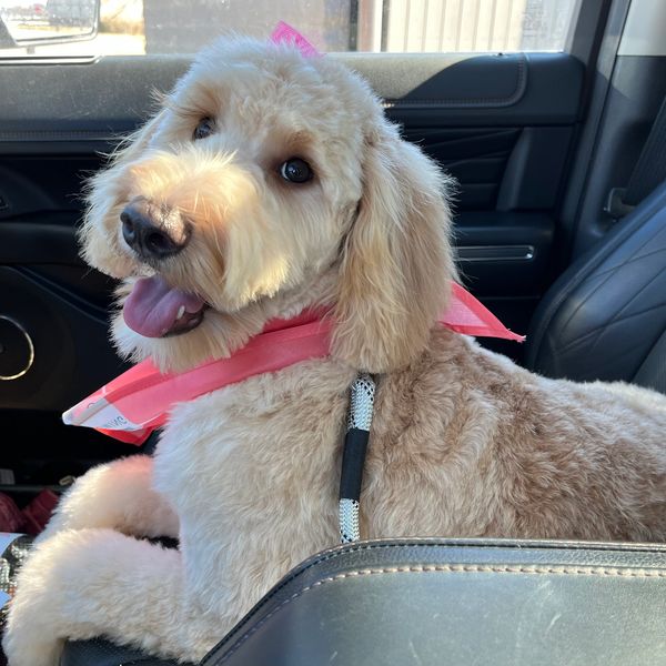 Butters is our F1 Aussiedoodle. She too is a snuggle bug. She is affectionate and playful. She thoroughly enjoys playing ball.